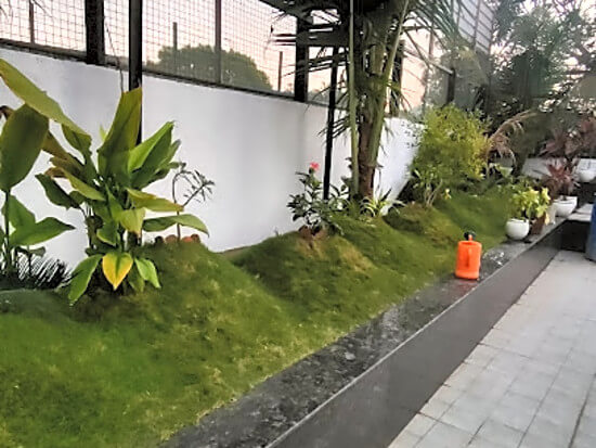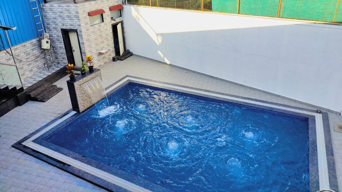 Outdoor space is with full grown trees and podium. The outdoor pool and tiled space are a perfect settings for you to relax and enjoy the chilled night Yeoor weather. It has an outdoor 1st floor lounge area with dinning faclity also you can enjoy the views from there.