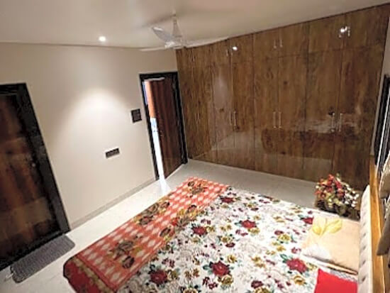 Bedroom One | Ground floor Master non Ac bedroom bedroom with attached bath, wadrobe with dressing mirror. Sleeping is on the queen size double bed and ample space for extra mattresses. |