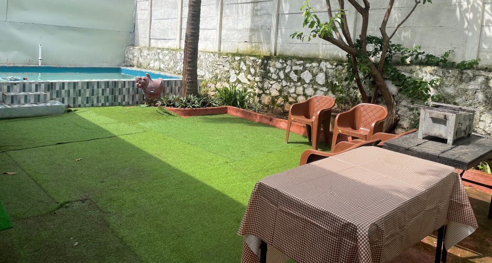 Outdoor space is with full grown trees like Coconut, Guava and Mulberry tree. It has the outdoor lounge area with a dinning faclity to be one with nature. Bonfire and Barbaque on request weather permiting can be arranged out here.